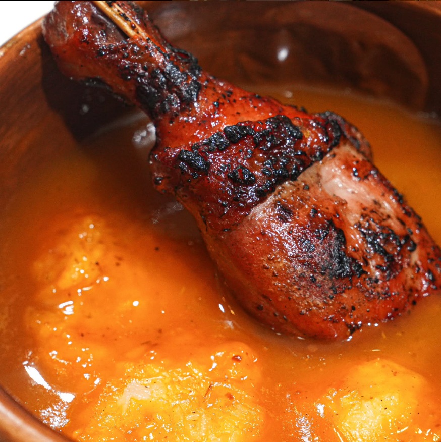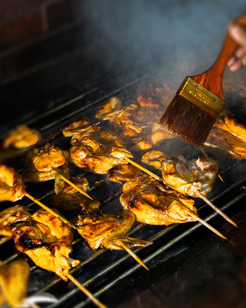 No tour of Philippine grilled food is complete without the iconic Chicken Inasal from Bacolod. At Inasal Chicken Bacolod, the chicken is marinated in a vibrant yellow mixture consisting of calamansi, annatto oil, and a medley of herbs, giving it a bright, tangy counterpoint to the sweetness of the typical barbecue. Grilled over hot coals, the chicken skin becomes beautifully taut and kissed with char, while the basting of annatto oil ensures the meat remains juicy and fragrant.