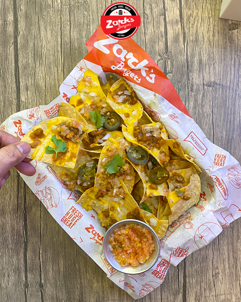 A beloved purveyor of hefty American burgers, Zark’s extends its commitment to maximalist, high-impact comfort food with its appetizers. Its nachos are a plate of pure indulgence, featuring golden tortilla chips layered with a rich, Tex-Mex-seasoned ground beef that provides a robust, savory backbone. The dish is then blanketed in a generous, velvety cheese sauce and finished with cool, crunchy accents.
