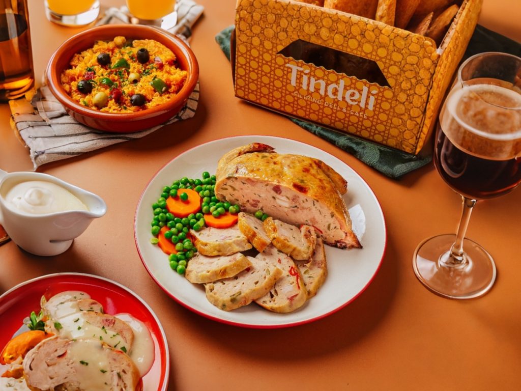 Indulge in classic Filipino dishes with a refined, celebratory touch at Tindeli Filipino Deli & Cafe. Their Chicken Galantina is a stunning deboned chicken stuffed with a savory, festive mix of cured meats and eggs, roasted to golden perfection and served in elegant slices with a light, creamy sauce. Complementing this is the Hardinera, a lavish Quezon-style meatloaf that is rich with ground pork, tomato sauce, and sweet pickle relish, steamed until firm to capture that quintessential holiday mosaic.