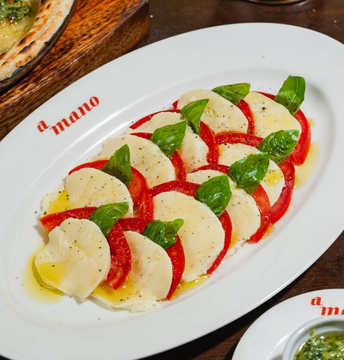 Indulge in authentic Italian cuisine with a healthy twist at A Mano, where traditional dishes from across Italy—from handcrafted pasta to wood-fired pizzas- are served. It also offers well-crafted salads such as Insalata Cacio e Pepe (Romaine Lettuce, Aceto Balsamico, Pecorino Romano and Black Pepper Dressing), Insalata Cesare con Guanciale (Romaine Lettuce, Guanciale, Housemade Croutons, Parmigiano Reggiano, Caesar Dressing), and Caprese con Pesto (Mozzarella di Bufala, Tomatoes, Basil, Pesto, EVOO)