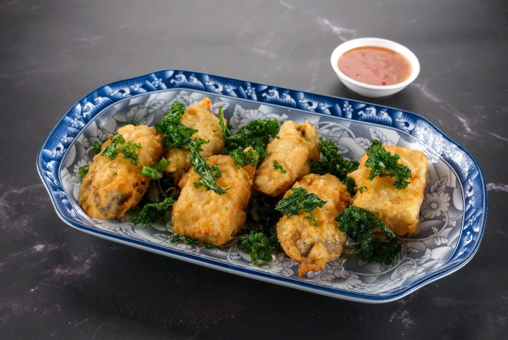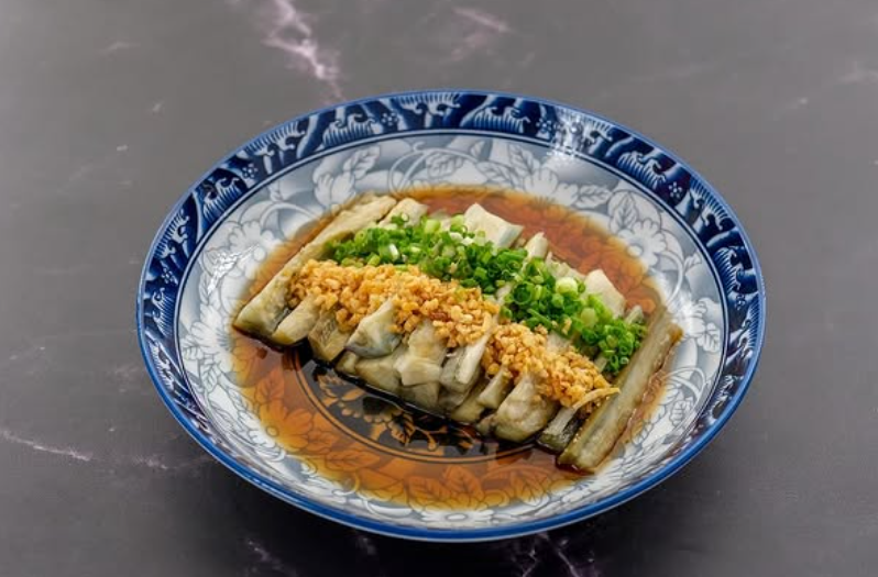 Their vegan options include Steamed Eggplant with Fried Garlic and Sweet Soy Sauce, Grilled local broccoli infused with secret cumin seasoning, and the Deep-fried three of a kind (A trio of local tofu, green bell pepper, and eggplant, each generously filled with a rich prawn and cuttlefish mousse)